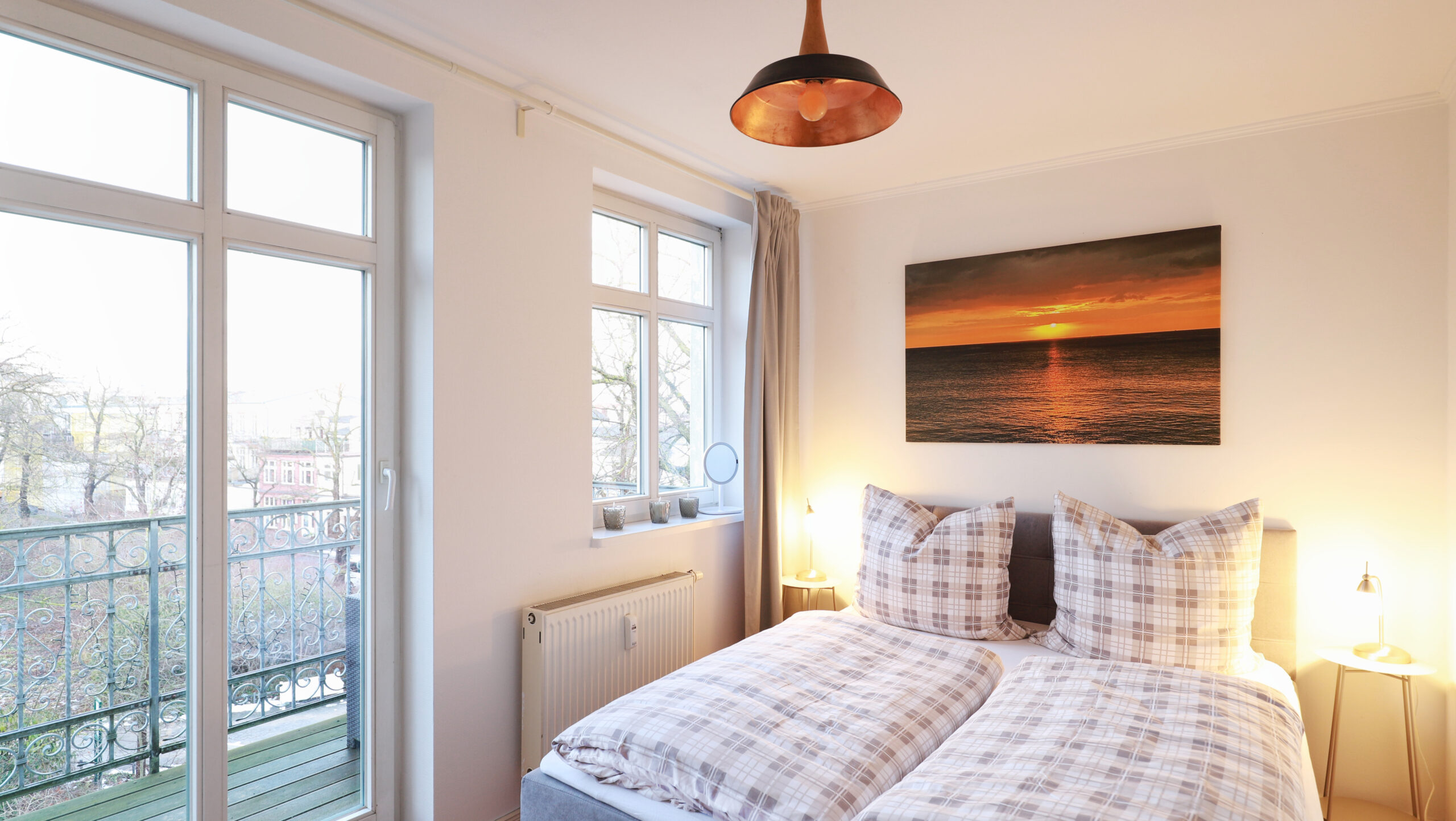 Durch die zwei getrennten Schlafzimmer bietet das Kurparkapartment ein hohes Maß an Privatsphäre. Es ist die perfekte Wahl für Gäste, die den Lifestyle von Warnemünde – zwischen Strandpromenade, Altem Strom und Park – erleben wollen und Wert auf ein großzügiges, stilvolles Zuhause auf Zeit legen.